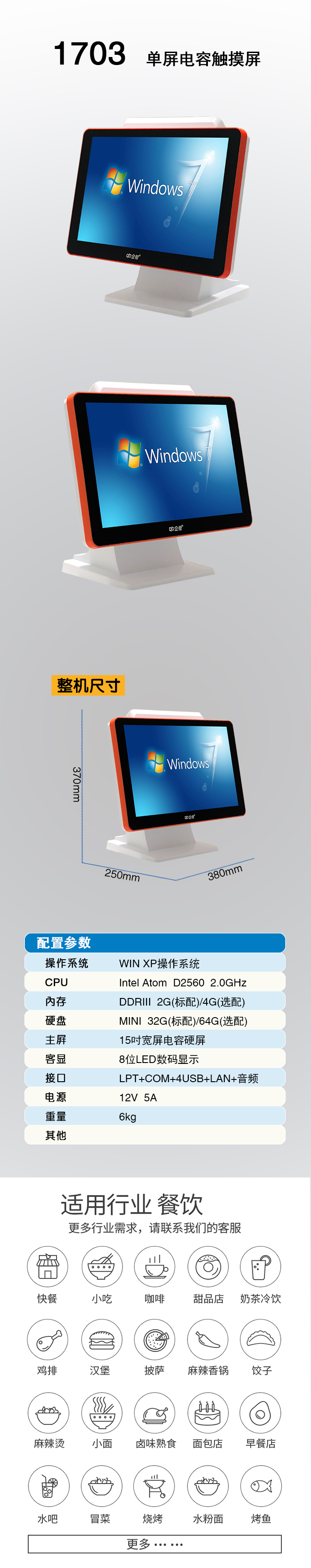 触摸屏1703A-DR白橙(15宽单 2560 2G 32G)(zy)